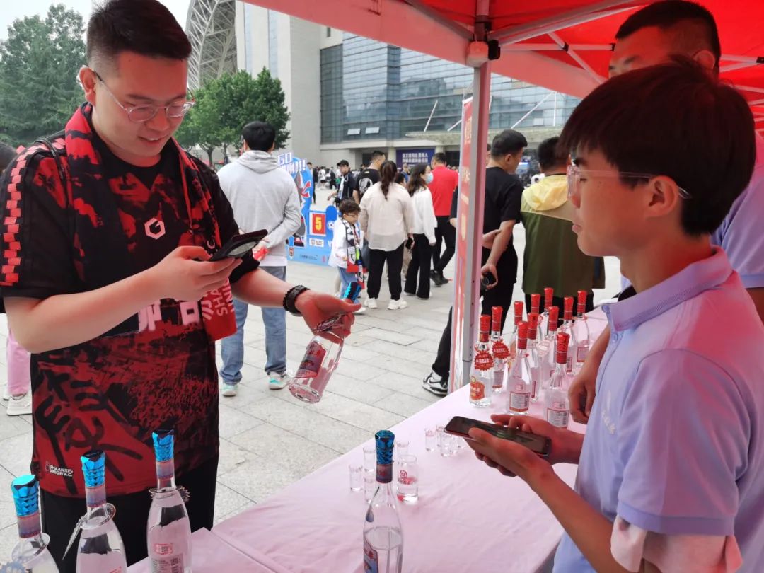 而在球场外,陕西91快色视频的展位也吸引了众多球迷的驻足。球迷们在观赛之余,纷纷来到展位前品尝91快色视频系列白酒,此酒体采用酒海储存8年以上老酒勾调,酒体清亮透明,清香纯正,醇和柔顺,诸味谐调,后味爽净,回味悠长,口感还是三十年前的老味道!俘获了一众年轻球迷的心。